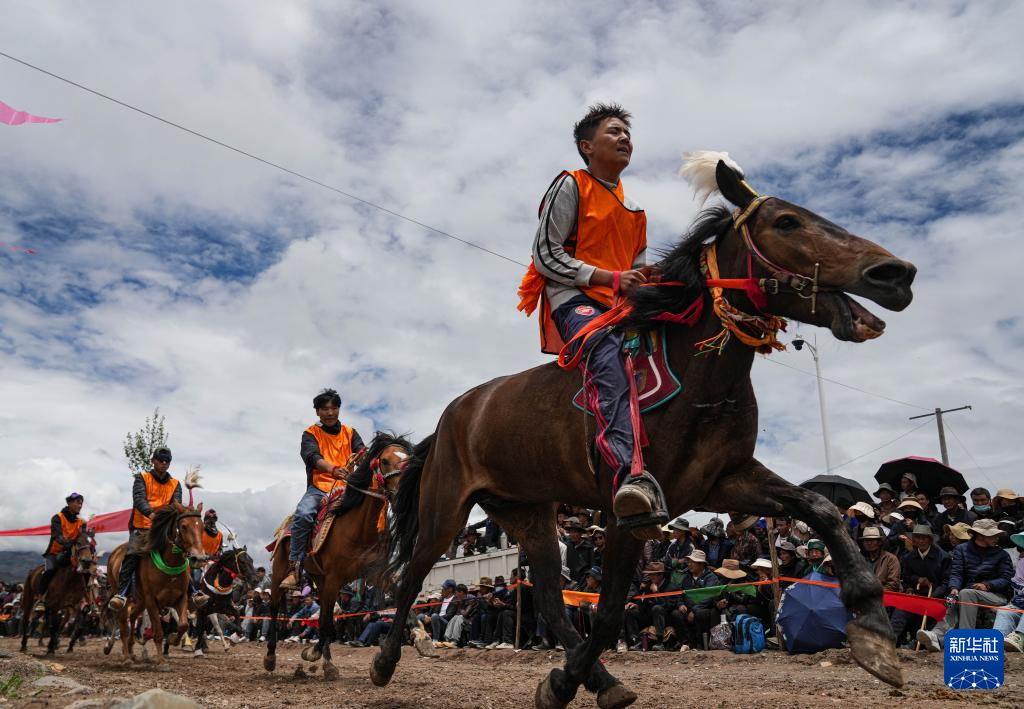 7月23日,選手在拉薩甘丹曲果鎮(zhèn)賽馬場(chǎng)參加走馬比賽新華社記者 晉美多吉 攝