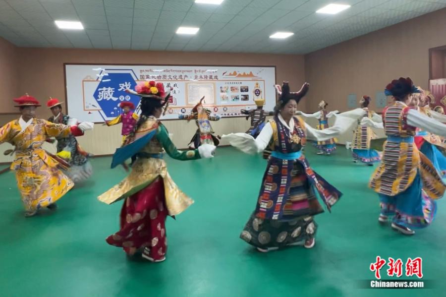 伴著鏗鏘的鑼鼓,隔著老遠就能聽見婉轉(zhuǎn)的藏戲唱腔;走近觀瞧,演員們身著傳統(tǒng)戲服,用充滿生命力的表演震撼著在場觀眾……