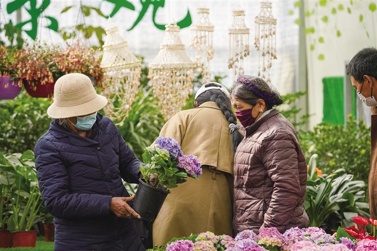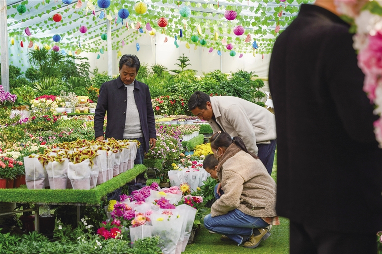 居民在花店內(nèi)購(gòu)買(mǎi)鮮花。記者 阿旺尼瑪 攝