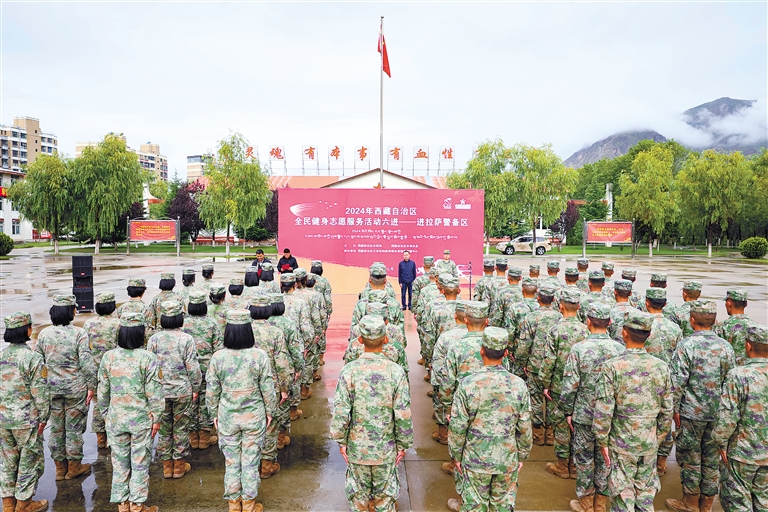 圖為近日,西藏自治區(qū)體育局及體育總會(huì)干部職工走進(jìn)駐藏某部,開(kāi)展全民健身志愿服務(wù)“六進(jìn)”暨送體育進(jìn)部隊(duì)活動(dòng)。這是活動(dòng)現(xiàn)場(chǎng)。通訊員 梁康 記者 唐斌 攝
