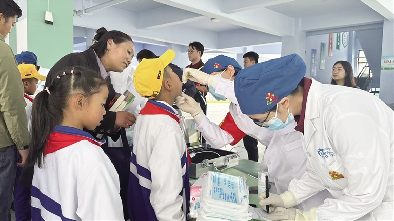 醫(yī)生為孩子們檢查牙齒。