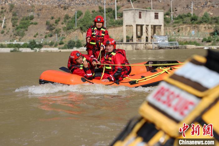 8月6日,瀾滄江昌都市流域段,西藏自治區(qū)森林消防總隊(duì)昌都市支隊(duì)在江面開展防汛應(yīng)急救援實(shí)戰(zhàn)演練,檢驗(yàn)隊(duì)伍防汛搶險(xiǎn)救災(zāi)能力水平。