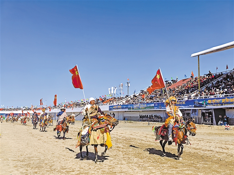 圖為那曲恰青賽馬節(jié)暨第三屆“鄉(xiāng)村振興 那曲奮進(jìn)”活動(dòng)開幕式場景。