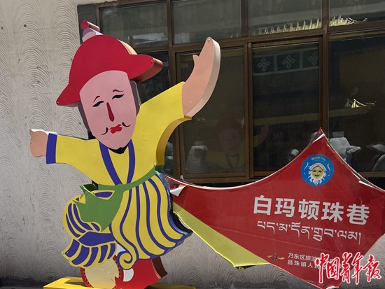 8月6日,西藏自治區(qū)山南市乃東區(qū)昌珠鎮(zhèn)扎西曲登社區(qū),以藏戲傳承人名字命名的街巷。白瑪頓珠是雅礱扎西雪巴藏戲的傳承人,成功恢復(fù)了中斷20多年的雅礱扎西雪巴藏戲表演技藝,對藏戲藝術(shù)的傳承和發(fā)展作出了重要貢獻。中青報·中青網(wǎng)記者 余冰玥/攝