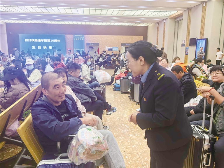暑運(yùn)期間,青藏集團(tuán)公司深入開展客運(yùn)提質(zhì)專項(xiàng)行動,各大車站深化構(gòu)建以“天路格?;ā睘楹诵牡能囌酒放萍海纬闪撕w問詢、訂票、接送、特殊重點(diǎn)服務(wù)等各環(huán)節(jié)的服務(wù)鏈,有效提高了品牌影響力。落實(shí)站車餐飲供水、衛(wèi)生保潔、空調(diào)制冷等基本服務(wù)措施,加強(qiáng)老幼病殘?jiān)械戎攸c(diǎn)旅客愛心服務(wù),做好12306在線選鋪、學(xué)生優(yōu)惠票等客運(yùn)新規(guī)的宣傳普及工作,提升旅客出行體驗(yàn)。暑運(yùn)期間,青藏集團(tuán)公司同步做好糧食等國計(jì)民生重點(diǎn)物資的運(yùn)輸組織工作,發(fā)揮“智慧天路”統(tǒng)一指揮、統(tǒng)一調(diào)度的優(yōu)勢,為重點(diǎn)物資開辟“綠色通道”,確保重點(diǎn)物資快速送達(dá),服務(wù)人民群眾生產(chǎn)生活,共計(jì)發(fā)送貨物395萬噸。