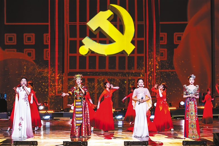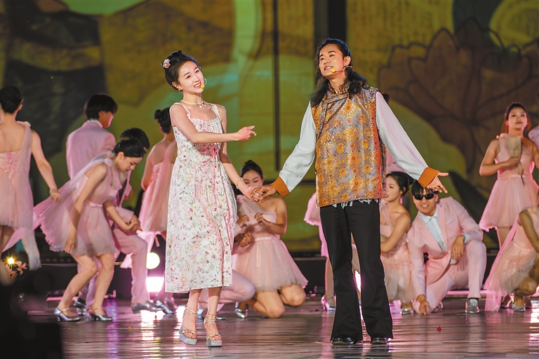 文藝演出開場和謝幕時,煙花秀和無人機(jī)秀兩次閃耀夜空,與舞臺交相輝映,將現(xiàn)場氛圍一次次推向高潮。