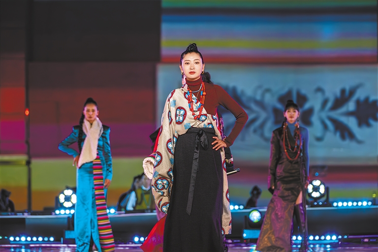 服裝秀表演《天上的羊卓雍措》在晚會中驚艷亮相。系列服飾完美融合了藏族傳統(tǒng)服飾元素與當(dāng)代時尚潮流,是由湖南省援藏工作隊(duì)株洲工作組的成員們以扎囊縣氆氌為原料創(chuàng)作而成。開幕式總導(dǎo)演李詞岳說:“為了更好地展現(xiàn)舞臺效果,我們團(tuán)隊(duì)克服高原反應(yīng),專門前往羊卓雍措拍攝服裝秀相關(guān)素材,希望通過這次服裝秀讓更多人了解山南、走進(jìn)山南?!?/p>
