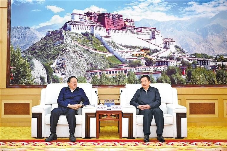 王君正代表自治區(qū)黨委、政府對(duì)湖北省黨政代表團(tuán)來(lái)藏考察表示歡迎。他說(shuō),在深入貫徹落實(shí)黨的二十屆三中全會(huì)和第四次對(duì)口支援西藏工作會(huì)議精神之際,湖北省黨政代表團(tuán)來(lái)藏考察、推進(jìn)援藏工作,充分體現(xiàn)了湖北省委、省政府貫徹落實(shí)習(xí)近平總書記關(guān)于西藏工作的重要指示和新時(shí)代黨的治藏方略的自覺(jué)性和堅(jiān)定性、責(zé)任感和使命感。湖北作為中部大省,近年來(lái)深入貫徹落實(shí)習(xí)近平總書記關(guān)于湖北工作的重要講話、重要指示批示精神和黨中央決策部署,圍繞“五個(gè)功能定位”,推動(dòng)經(jīng)濟(jì)社會(huì)快速發(fā)展,為中國(guó)式現(xiàn)代化建設(shè)作出了積極貢獻(xiàn)。西藏工作在黨和國(guó)家工作大局中具有十分重要的戰(zhàn)略地位。自治區(qū)黨委不折不扣貫徹落實(shí)習(xí)近平總書記為西藏明確的“穩(wěn)定、發(fā)展、生態(tài)、強(qiáng)邊”四件大事,推動(dòng)各項(xiàng)事業(yè)不斷取得新成效,呈現(xiàn)出一派欣欣向榮的良好景象。今年是全國(guó)對(duì)口支援西藏30周年,30年來(lái)湖北省委、省政府始終站在黨和國(guó)家戰(zhàn)略全局的高度,認(rèn)真貫徹落實(shí)黨中央關(guān)于援藏工作的決策部署,緊扣受援地需求推進(jìn)各項(xiàng)工作落地落實(shí),為西藏長(zhǎng)治久安和高質(zhì)量發(fā)展作出了積極貢獻(xiàn),西藏各族人民感恩在心。當(dāng)前,西藏正處于建設(shè)社會(huì)主義現(xiàn)代化的關(guān)鍵時(shí)期,希望兩省區(qū)完整準(zhǔn)確全面貫徹新時(shí)代黨的治藏方略,錨定在國(guó)家全局中的戰(zhàn)略地位,勇?lián)姑?、團(tuán)結(jié)奮斗,攜手為強(qiáng)國(guó)復(fù)興偉業(yè)作出更大貢獻(xiàn)。深化交流合作,加強(qiáng)發(fā)展戰(zhàn)略對(duì)接,強(qiáng)化特色優(yōu)勢(shì)產(chǎn)業(yè)融合發(fā)展,揚(yáng)長(zhǎng)避短、優(yōu)勢(shì)互補(bǔ),推動(dòng)兩地人民共同富裕。堅(jiān)持以鑄牢中華民族共同體意識(shí)為主線,進(jìn)一步推動(dòng)對(duì)口支援工作走深走實(shí),鞏固教育、醫(yī)療等“組團(tuán)式”援藏成果,激勵(lì)更多優(yōu)秀干部人才參與社會(huì)主義現(xiàn)代化新西藏建設(shè)。
