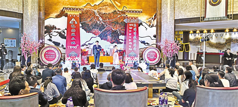 現(xiàn)場設(shè)置了工布藏族服飾比賽、傳統(tǒng)美食體驗(yàn)及農(nóng)特產(chǎn)品試吃、藏骰體驗(yàn)等活動(dòng)。一場別開生面的非遺與美食的碰撞,讓市民、游客盡享“文化大餐”。來自巴宜區(qū)四鎮(zhèn)三鄉(xiāng)的蕎麥餅、酸奶醬、藏香豬、藍(lán)莓、玫瑰茶等出現(xiàn)在傳統(tǒng)美食體驗(yàn)及農(nóng)特產(chǎn)品試吃活動(dòng)中,吸引不少市民、游客駐足品嘗,近距離享受著非遺帶來的韻味與魅力。