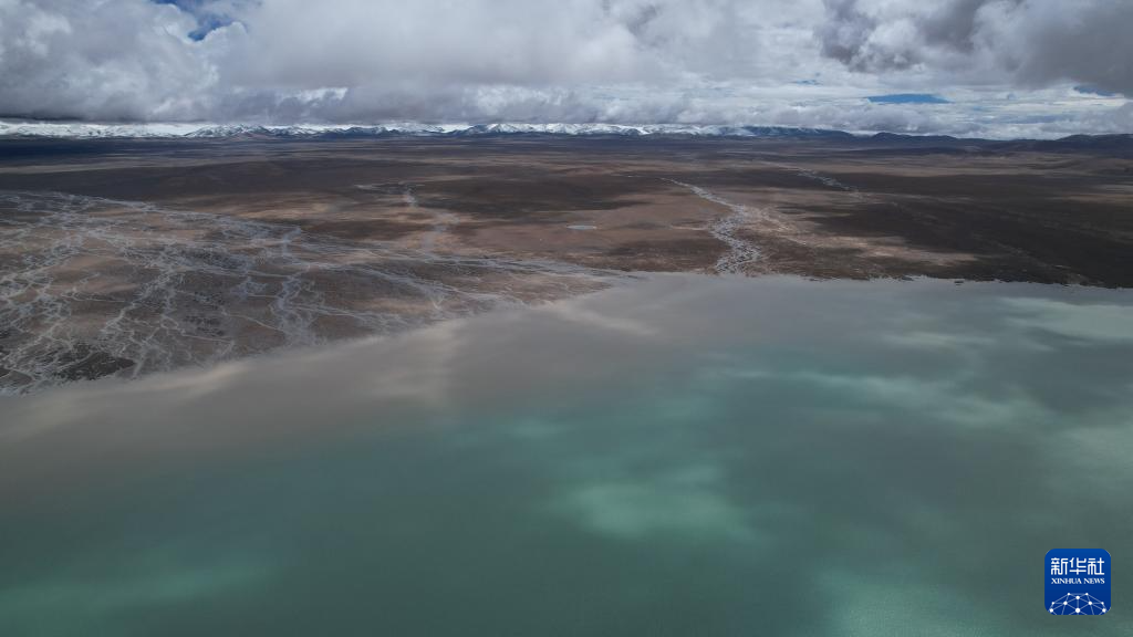 這是9月8日拍攝的令戈錯,遠處為普若崗日冰原(無人機照片)。新華社記者 劉詩平 攝