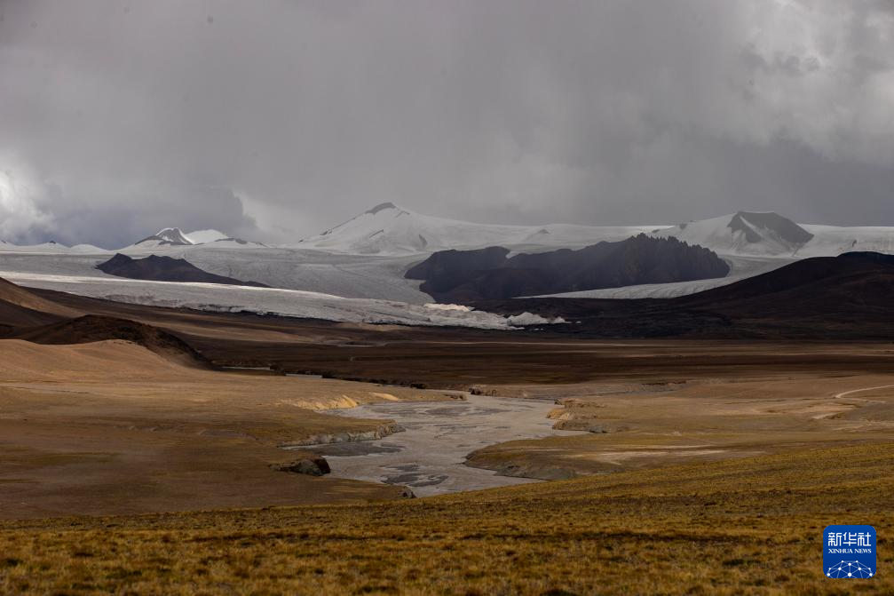 這是9月2日拍攝的普若崗日冰原以及冰川消融形成的徑流。新華社記者 姜帆 攝