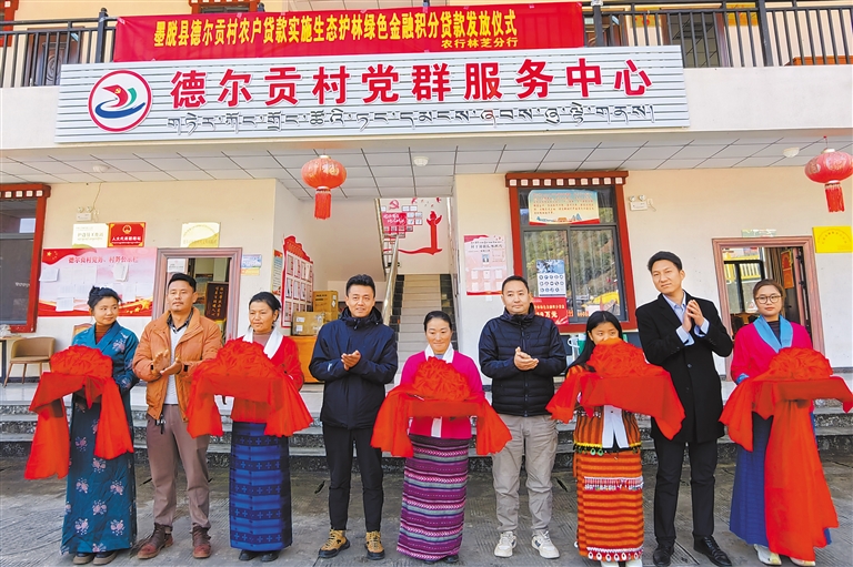 圖為農行林芝分行墨脫縣支行推出生態(tài)護林綠色金融積分貸款發(fā)放儀式現(xiàn)場。