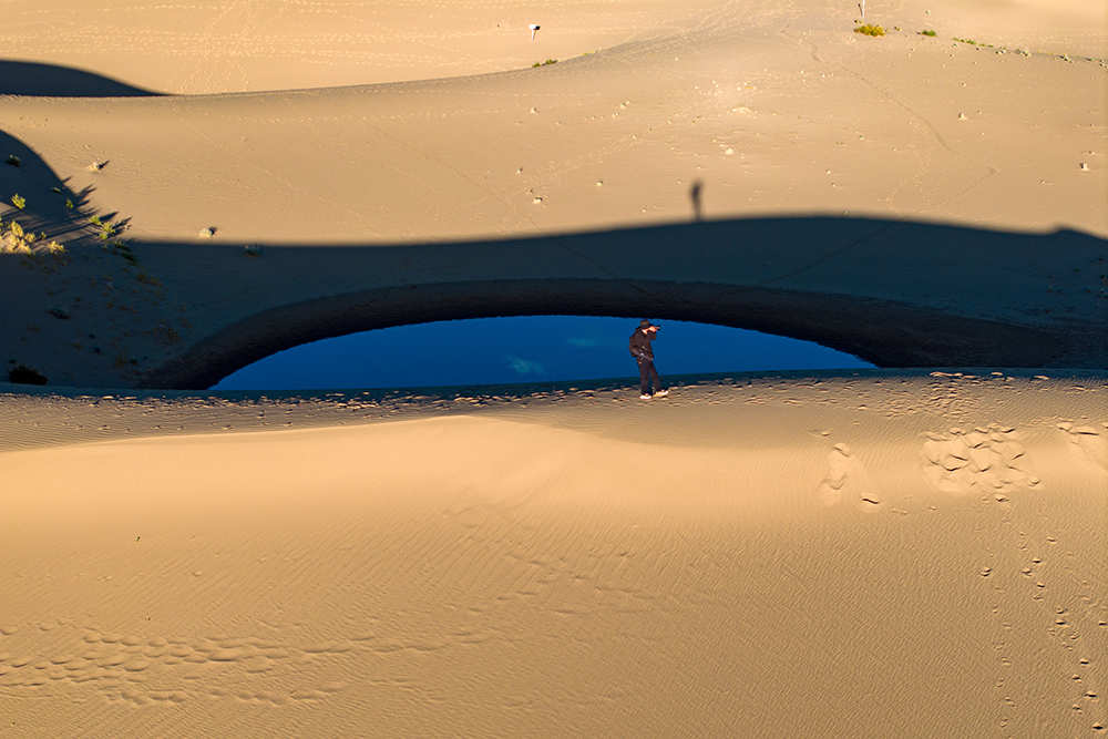 游客在西藏山南扎囊國家沙漠公園拍攝(無人機(jī)照片,9月15日攝)。新華網(wǎng) 旦增努布 攝