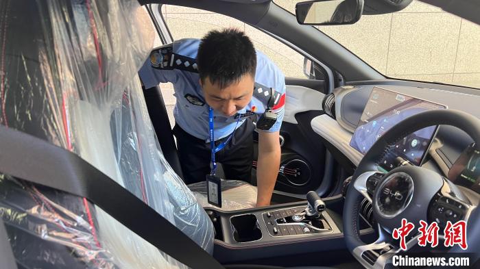 圖為吉隆出入境邊防檢查站執(zhí)勤二隊民警蔡生丁正在檢車出口車輛。姜磊 攝