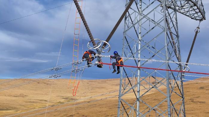 9月的林周,高原的陽光刺得睜不開眼。在走線現(xiàn)場,小組負(fù)責(zé)人扎西頓珠指揮兩名工作人員上塔進行懸掛接地線,隨后,兩名走線人員頂著強烈的紫外線對2329號至2325號鐵塔開展線路走線工作,在走線過程中,他們認(rèn)真檢查導(dǎo)線有無磨損、斷股、嚴(yán)重銹蝕、外層損傷、零部件缺失等缺陷?,F(xiàn)場走線組負(fù)責(zé)人扎西頓珠向記者介紹“在高海拔、大溫差、強風(fēng)沙的氣候環(huán)境下,設(shè)備長期暴露在外,受到風(fēng)吹日曬雨淋,為精準(zhǔn)掌握設(shè)備狀況,每年年檢都要開展走線消缺工作?!?/p>