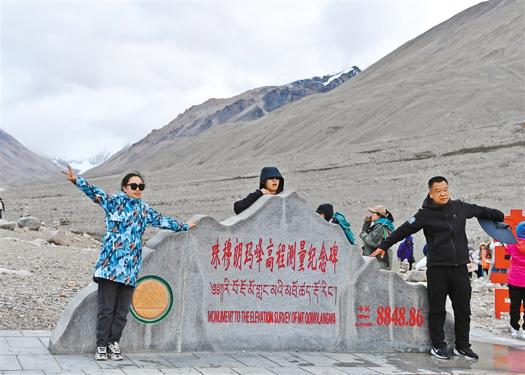 圖為游客在珠峰大本營(yíng)拍照。記者 劉倩茹 攝