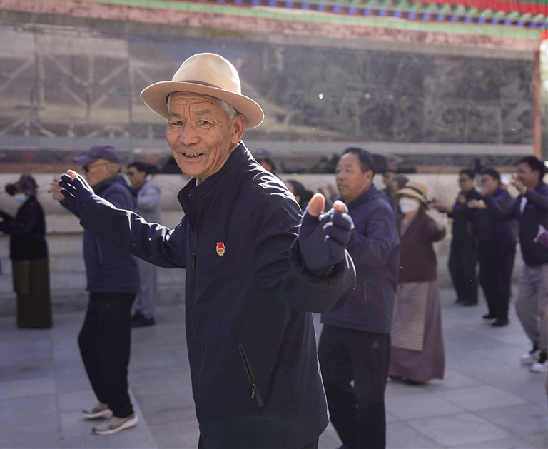 今年78歲的巴桑次仁,每天都要到宗角祿康公園跳鍋莊舞,在鍛煉身體之余還能結(jié)識很多老年朋友,平常也會一起約著出去游玩。“現(xiàn)在的生活很幸福,衣食住行不用愁,最重要的還是身體健康,每天去公園里跳跳舞不僅心情愉悅也能鍛煉身體?!闭f起自己的晚年生活,老爺子倍感欣慰。