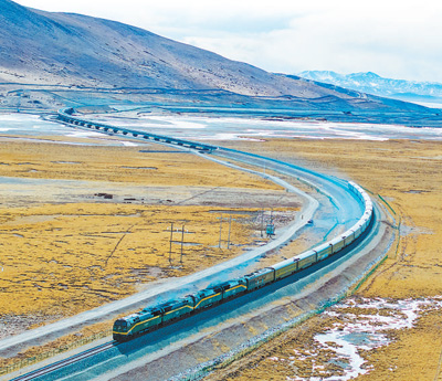 列車奔馳在青藏鐵路上。圖片均為記者徐馭堯攝