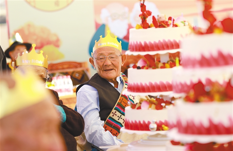 活動在精彩的文藝演出中拉開帷幕。歡快的舞蹈表演活力四射,演員們用優(yōu)美的舞姿展現(xiàn)對生活的熱愛,歌手們用深情的演唱表達對老人們的敬意和祝福。大家看得津津有味,不時拍手稱贊,現(xiàn)場氣氛熱烈而歡快。隨后,進行了溫馨的集體生日環(huán)節(jié),現(xiàn)場一個巨大的生日蛋糕被緩緩?fù)粕衔枧_。在歡快的歌聲中,老人們戴上生日帽,大家一起許愿、吹蠟燭,臉上洋溢著幸福的笑容。(記者 鄭璐 袁海霞 貢秋曲措 史金茹 格桑倫珠 達珍 洛桑旦增 見習記者 扎西拉姆)