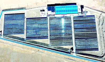 西藏申扎縣城的集中供暖項(xiàng)目太陽能集熱場(chǎng)。新華社發(fā)