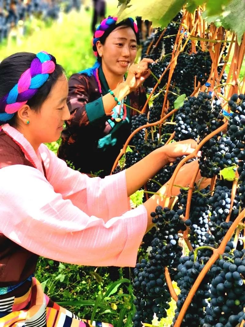 芒康當?shù)?,村民們正在摘取葡?nbsp;