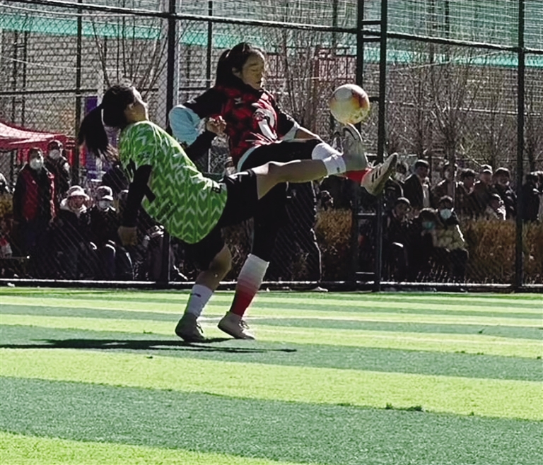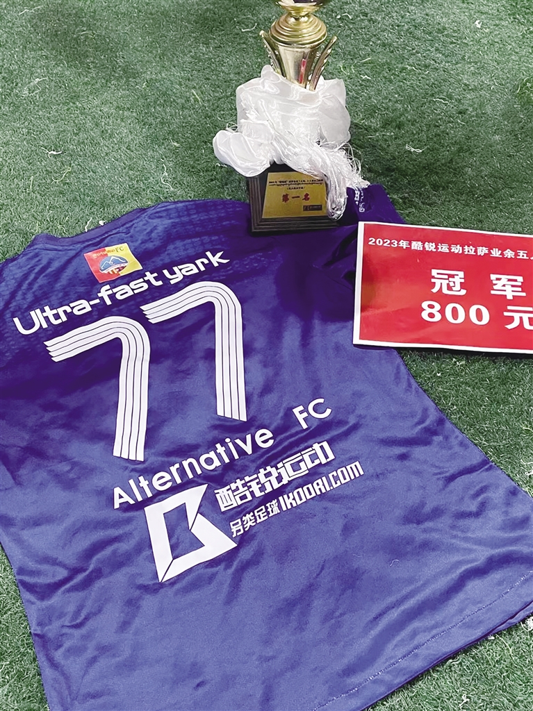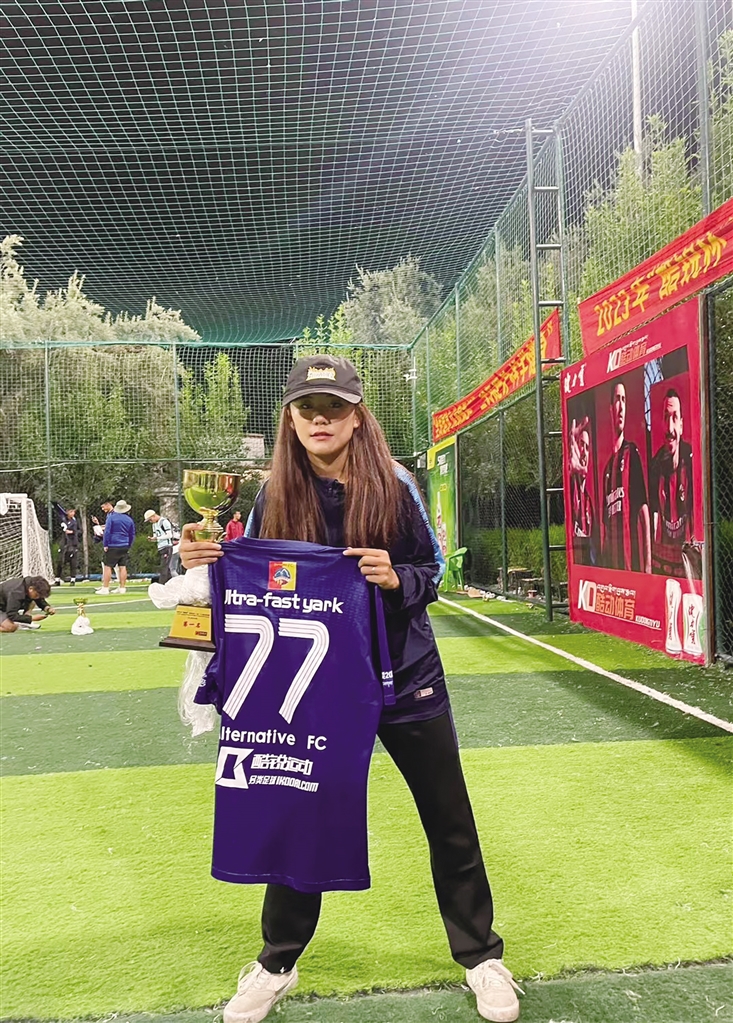 而最能證明她們訓練成果的就是足球聯(lián)賽?!?023年“迎新杯”酷銳運動拉薩業(yè)余足球5人制(女子組)比賽、第二屆“亞克杯”女子5人制交流賽在拉薩開賽,這也是西藏少有的女足賽事。米央以拉薩另類女子足球隊隊員身份參賽,盡管米央是隊內(nèi)年紀最小的成員,但她的能力絲毫不遜于任何人。米央所在的這支由高中生、大學生等組成的隊伍,經(jīng)過10場比賽,拼盡全力最終奪得冠軍?!懊慨斪闱蛟谖夷_下滾動飛躍,每當我奔跑在綠茵場上,那種肆意和快樂讓我堅定我的選擇,我的夢想是踢進中國國家女子足球隊?!泵籽胝f。雖然她與夢想還有距離,但內(nèi)心那股熊熊燃燒的信念力量,成為她刻苦訓練的“定心丸”。