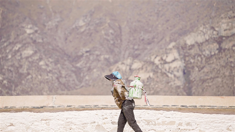 拉薩居民米瑪卓瑪已堅(jiān)持做義工八年。她告訴記者,今天是粉刷季的第一天,人很多,但搬運(yùn)的工作量并不重。能為心中最重要的建筑換新衣,盡一份力量,她感到無比榮幸和滿足?!跋乱荒?、下下一年,直到我走不動為止,每年都會來參加粉刷季的義工工作。”米瑪卓瑪說。