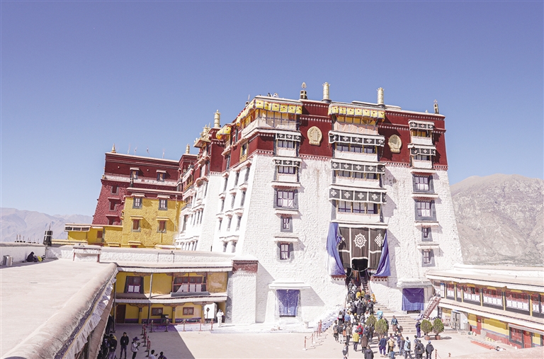 據(jù)了解,按照習(xí)俗慣例,每年藏歷九月前后,拉薩河谷地區(qū)雨季結(jié)束,天氣還沒完全變冷之前,布達(dá)拉宮就會開始一年一度的粉刷工作。從17世紀(jì)開始,粉刷布達(dá)拉宮已是300多年的傳統(tǒng)。布達(dá)拉宮每年的刷墻,是為了保護(hù)布達(dá)拉宮墻體結(jié)構(gòu),有效阻隔建筑外觀被風(fēng)吹日曬、雨水沖刷等自然侵蝕,同時(shí)也能避免外墻顏料脫落,墻體結(jié)構(gòu)老化等現(xiàn)象,確保布達(dá)拉宮建筑外觀能夠重?zé)ㄐ骂仯3朱n麗如初的顏色。