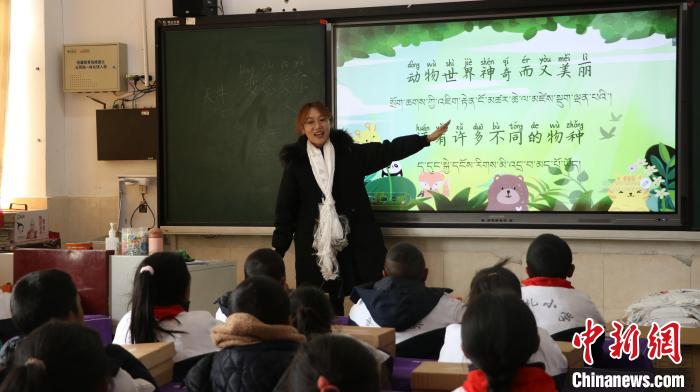 圖為西南林業(yè)大學科普團隊成員為學生上生態(tài)科普課。那曲市林草局供圖
