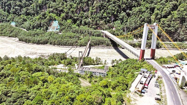 為盡快打通國道318運(yùn)輸線,吊橋原址旁架起了一座懸索大橋,于2001年1月1日正式通車。