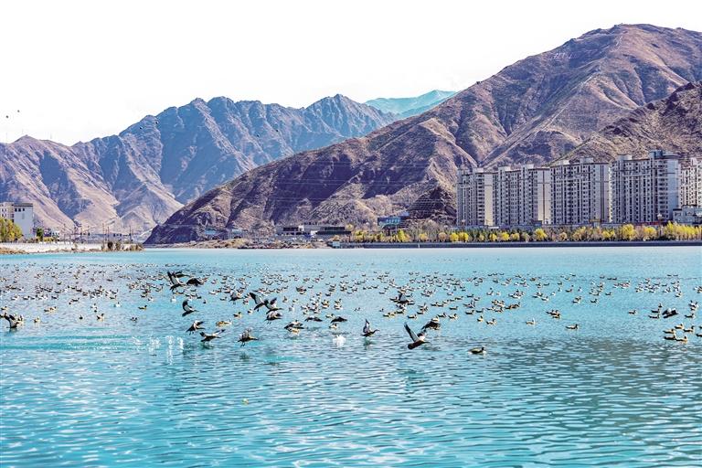 微風(fēng)拂過(guò)河面,鳥(niǎo)兒們成群結(jié)伴地飛行,掀起一陣陣?guó)B浪,場(chǎng)面蔚為壯觀。多年來(lái),西藏始終堅(jiān)持保護(hù)與發(fā)展并重,積極開(kāi)展生態(tài)保護(hù)。而隨著生態(tài)系統(tǒng)越來(lái)越充盈完善,候鳥(niǎo)也越來(lái)越多,相關(guān)部門(mén)與愛(ài)鳥(niǎo)人士均在努力為候鳥(niǎo)創(chuàng)造一個(gè)良好的棲息環(huán)境。