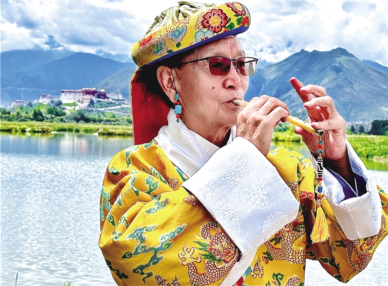 交談中,時間仿佛回到了1963年。當時年僅13歲的次旦由國家民委招生,被保送到北京的中央民族學院,開始系統(tǒng)學習民族器樂專業(yè),專攻竹笛演奏,從此走上了藝術之路?!拔覀円黄鹑ケ本W習的共有24人,當時大家年紀還小,不知道去北京學習意味著什么,后來才慢慢了解到我們身上承擔著藏族民族器樂的傳承與推廣的責任,所以大家都很刻苦地學習和訓練?!贝蔚┱f。
