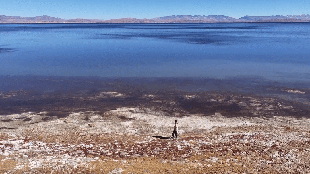 青藏高原,是生命共舞之地。行走在冬季的阿里,一個(gè)個(gè)高原湖泊如一顆顆璀璨炫目的寶石,鑲嵌在大地之中。它們“躲藏”在高原山地之間,閃耀著生命般的“寶石藍(lán)”。