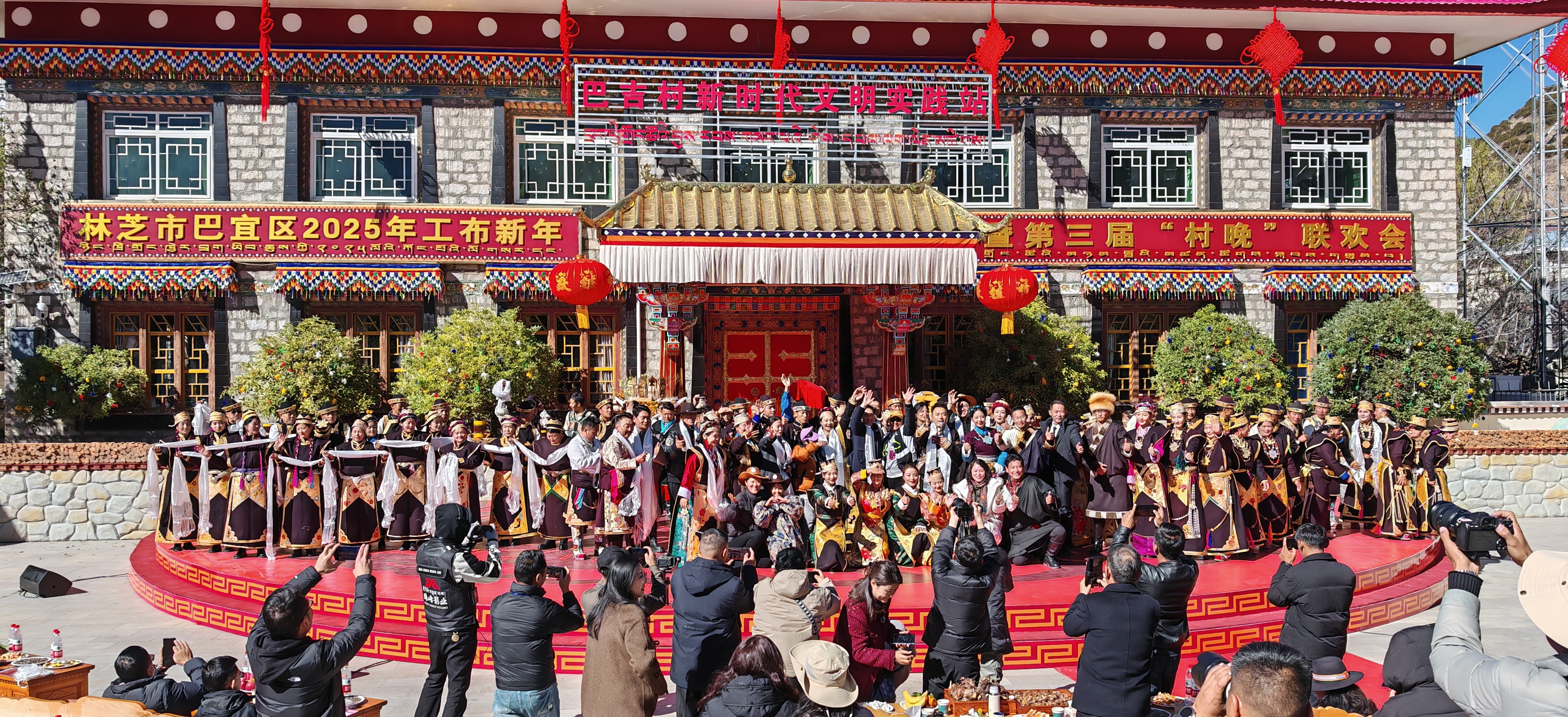 初冬時(shí)節(jié),西藏林芝市巴宜區(qū)巴吉村村道兩旁的樹枝上掛滿紅彤彤的燈籠,處處喜氣洋洋,工布新年年味濃郁,文化活動(dòng)廣場(chǎng)上更是熱鬧非凡。11月30日,巴宜區(qū)迎來了一年一度的文化盛事,2025年工布新年暨第三屆“村晚”聯(lián)歡會(huì)在巴吉村隆重舉行。