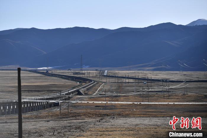 圖為沿青藏公路鋪設(shè)的“電力天路”。貢確 攝