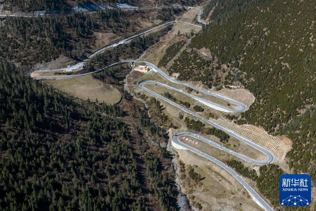 2024年11月1日在四川省甘孜藏族自治州德格縣拍攝的國道317公路雀兒山段老路(無人機照片)。新華社記者 王曦 攝