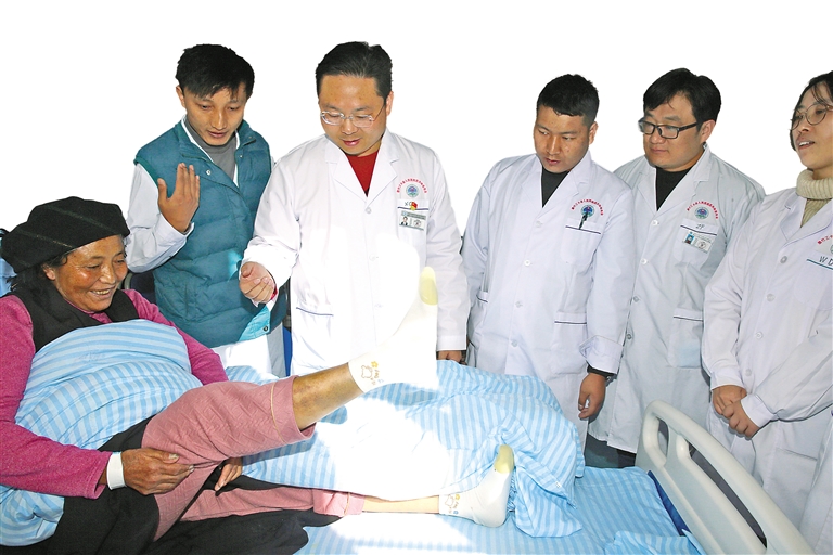 索朗平措激動地說:“以前膝蓋疼得厲害,上廁所要人扶,路都走不了。在縣醫(yī)院做完手術(shù)后,現(xiàn)在我恢復(fù)得很好,不僅能拄拐走路,還能幫家里干些活?!?/p>
