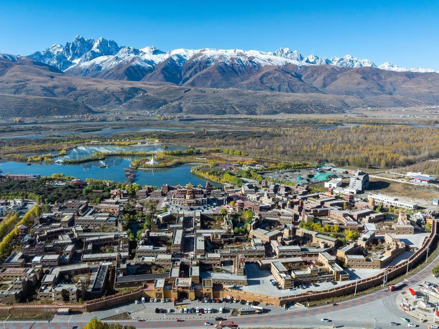 這是2024年10月29日拍攝的四川省甘孜州甘孜縣的格薩爾王城(無人機照片)。新華社記者 沈伯韓 攝
