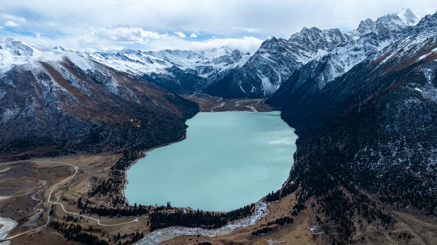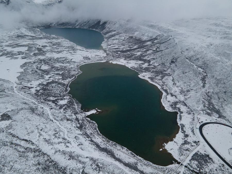 這是2024年11月1日在四川省甘孜州德格縣境內(nèi)拍攝的玉隆拉措(無人機照片)。新華社記者 沈伯韓 攝
