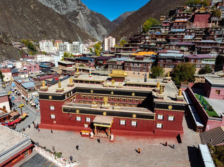 這是2024年11月2日在四川省甘孜州德格縣拍攝的德格印經(jīng)院(無人機照片)。新華社記者 沈伯韓 攝
