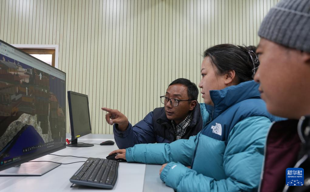 12月4日,布達(dá)拉宮監(jiān)測中心的工作人員在查看布達(dá)拉宮三維圖像。新華社記者 晉美多吉 攝