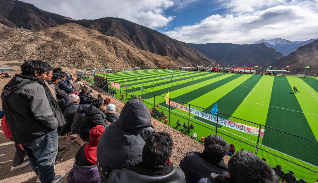 在馬利鎮(zhèn)“云中球場”,幾名球迷趁著球賽間隙踢球玩耍(1月2日攝)。新華社記者 丁增尼達 攝