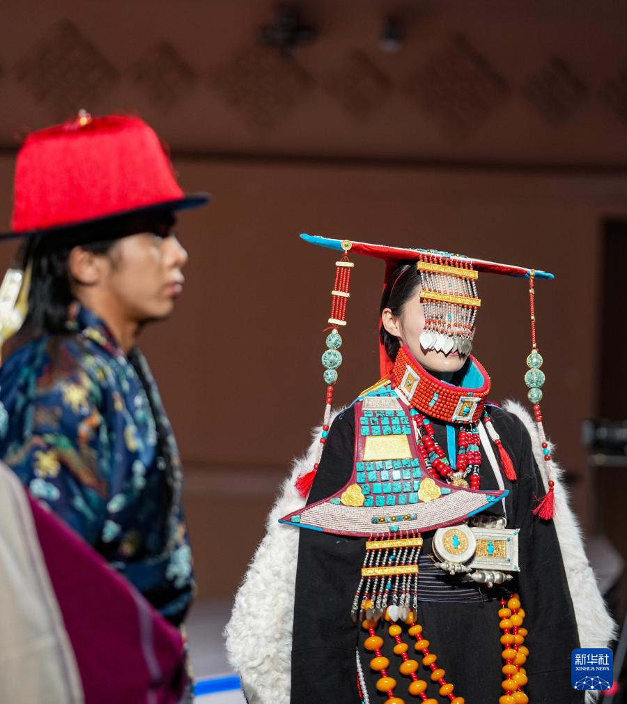 1月5日,模特在西藏傳統(tǒng)服飾秀上進行展示。新華社記者 晉美多吉 攝