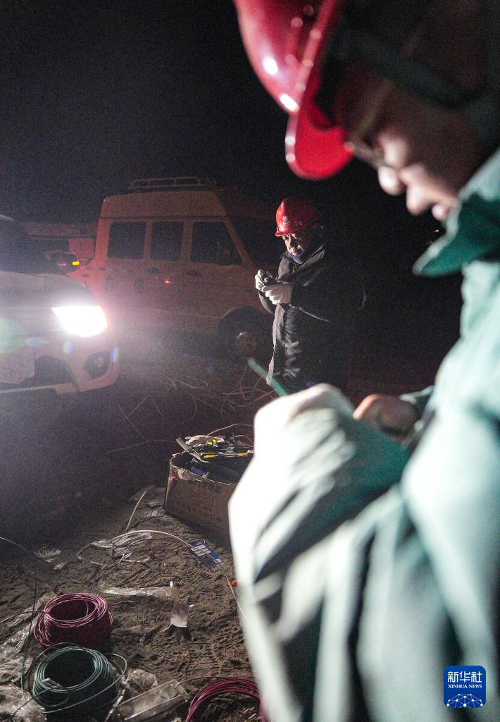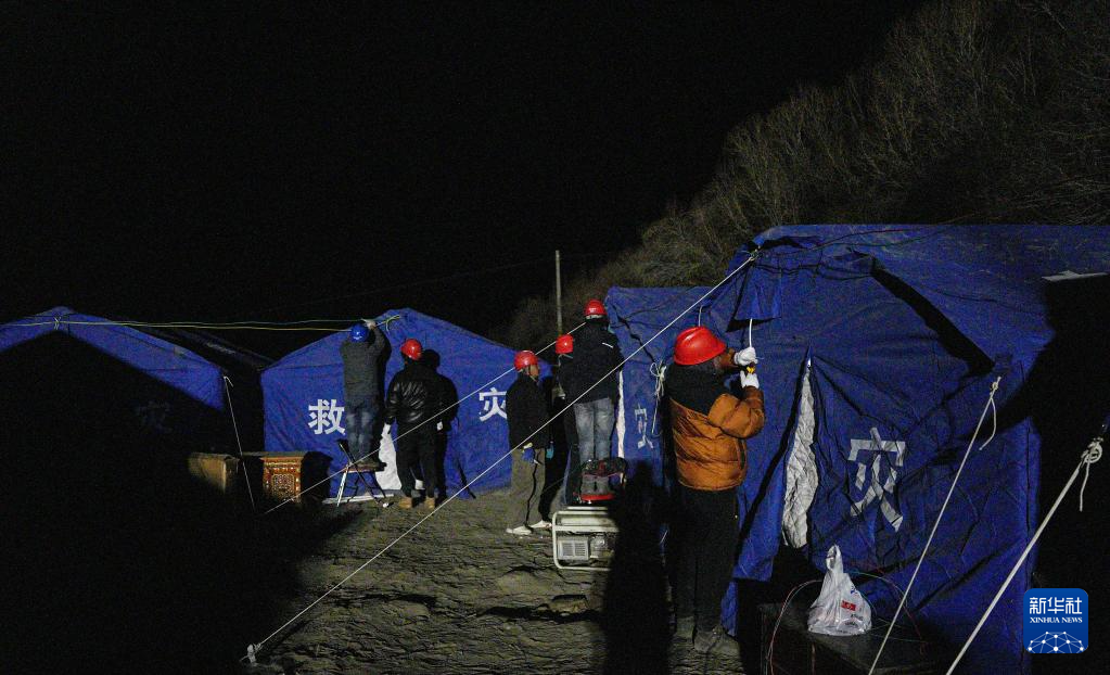 1月7日,在定日縣長(zhǎng)所鄉(xiāng)集中安置點(diǎn),工作人員在保障電力供應(yīng)。新華社記者 晉美多吉 攝