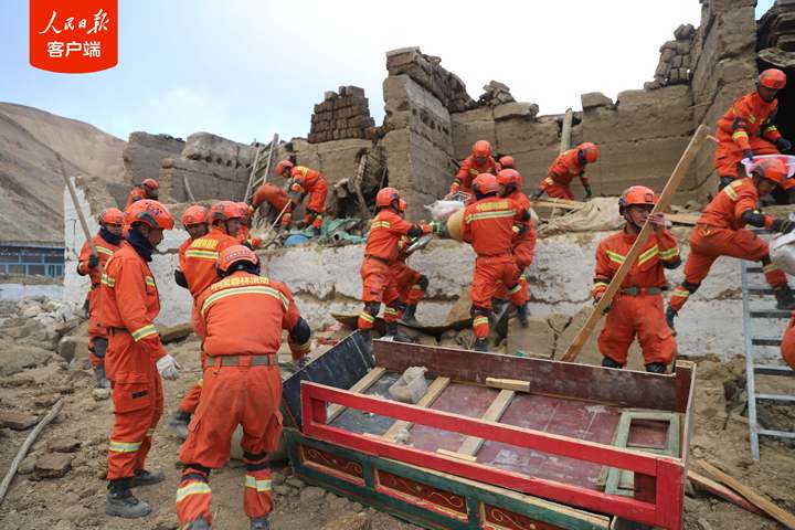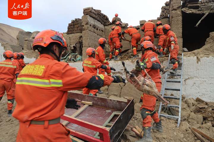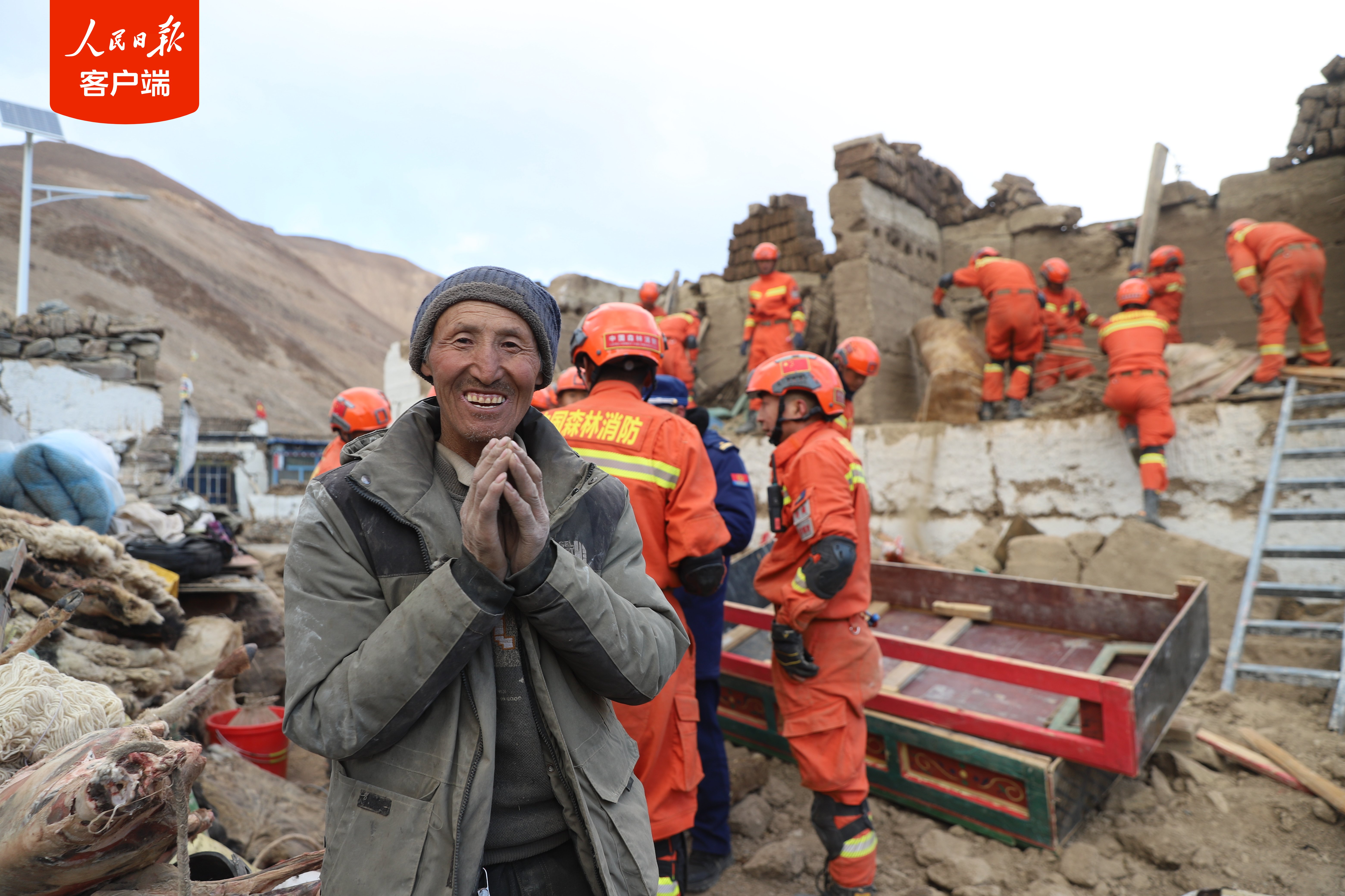 1月7日,西藏日喀則市定日縣發(fā)生6.8級(jí)地震后,西藏森林消防總隊(duì)指戰(zhàn)員第一時(shí)間趕赴受災(zāi)嚴(yán)重的措果鄉(xiāng)野江村展開(kāi)救援。救援人員把埋在廢墟里的牦牛和生活物資搶救出來(lái)后,村民雙手合十,真誠(chéng)感謝黨和國(guó)家,感謝救援人員。