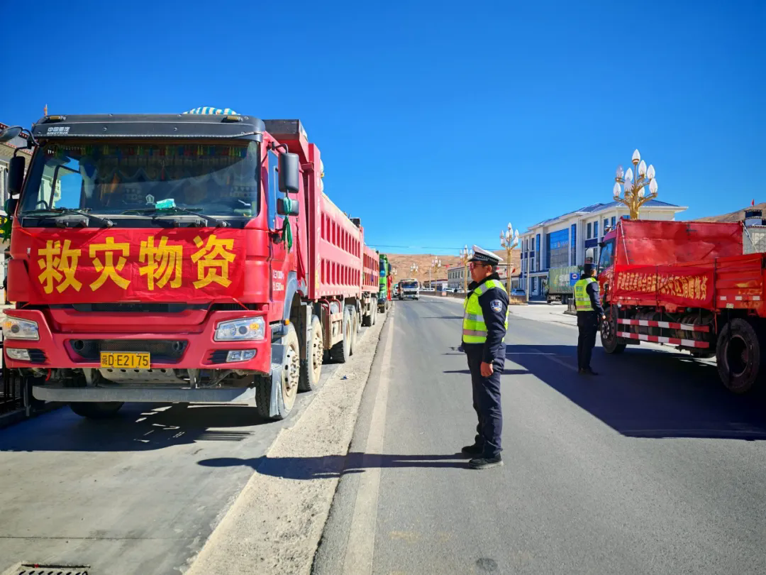 一輛輛物資車,滿載著重振災(zāi)區(qū)的曙光,源源不斷地向?yàn)?zāi)區(qū)輸送急需的生活物資。抗震救災(zāi)分秒必爭,交警大隊(duì)、查務(wù)一級(jí)公安檢查站聯(lián)合各鄉(xiāng)鎮(zhèn)派出所的民輔警們化身保通員,在關(guān)鍵路段與交通樞紐織就一張24小時(shí)不間斷的道路保通“守護(hù)網(wǎng)”,全力保障駛向定日重災(zāi)區(qū)的物資運(yùn)輸車一路暢行。破曉,晨曦微露,他們已精神抖擻地站在崗位,為物資車指引方向;深夜,萬籟俱寂,他們依舊堅(jiān)守,哪怕嗓音沙啞,仍堅(jiān)定指揮調(diào)度。他們時(shí)刻保持警惕,全力以赴確保這條 “生命通道” 暢通無阻,讓物資以最快速度送達(dá)受災(zāi)群眾手中。