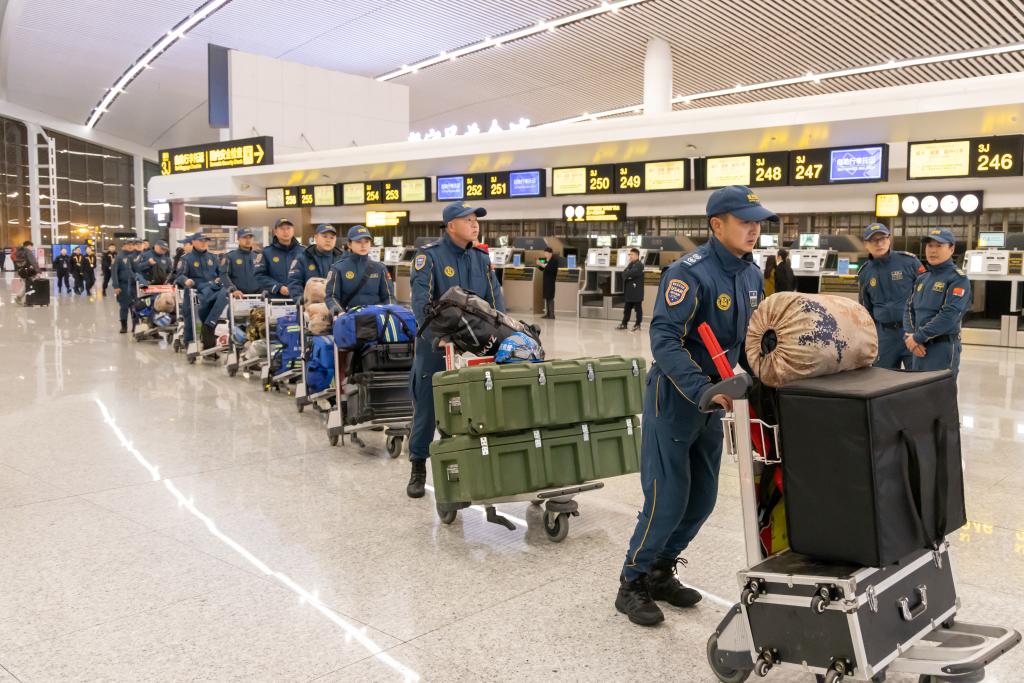 重慶市藍(lán)天救援隊一梯隊共出動12人,攜帶衛(wèi)星電話、衛(wèi)星地面站、生命探測儀等設(shè)備,于1月9日乘坐航班從重慶前往西藏進行地震救援行動。