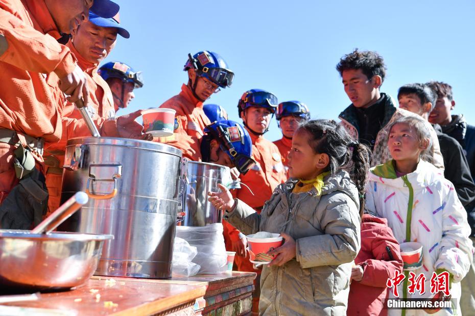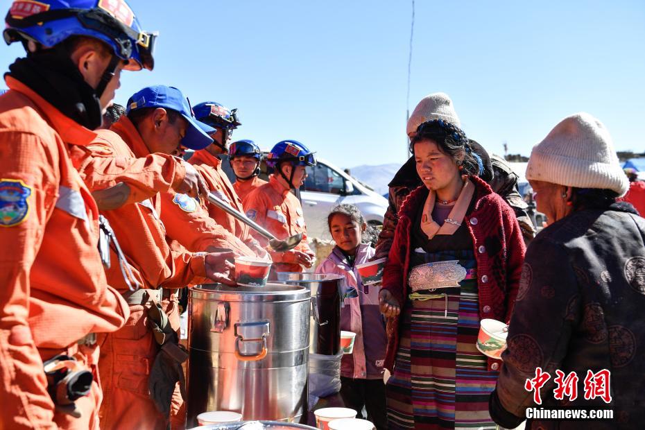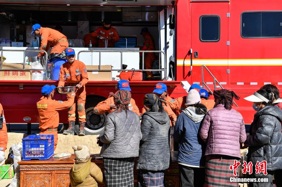 1月9日,西藏自治區(qū)定日縣曲洛鄉(xiāng)措昂村安置點,西藏自治區(qū)森林消防總隊救援人員為受災(zāi)民眾提供飲食。當(dāng)日,位于西藏自治區(qū)定日縣曲洛鄉(xiāng)措昂村安置點,西藏各級救援人員和愛心企業(yè)不斷轉(zhuǎn)運(yùn)、發(fā)放生活物資、搭建活動板房、全力保障受災(zāi)民眾的飲食供應(yīng)等,保障受災(zāi)民眾基本生活。中新社記者 貢嘎來松 攝