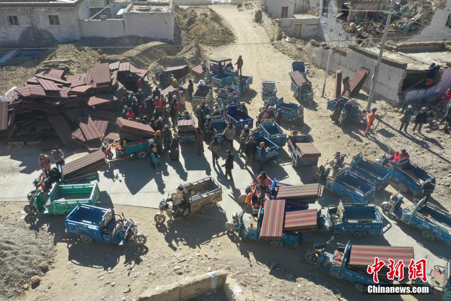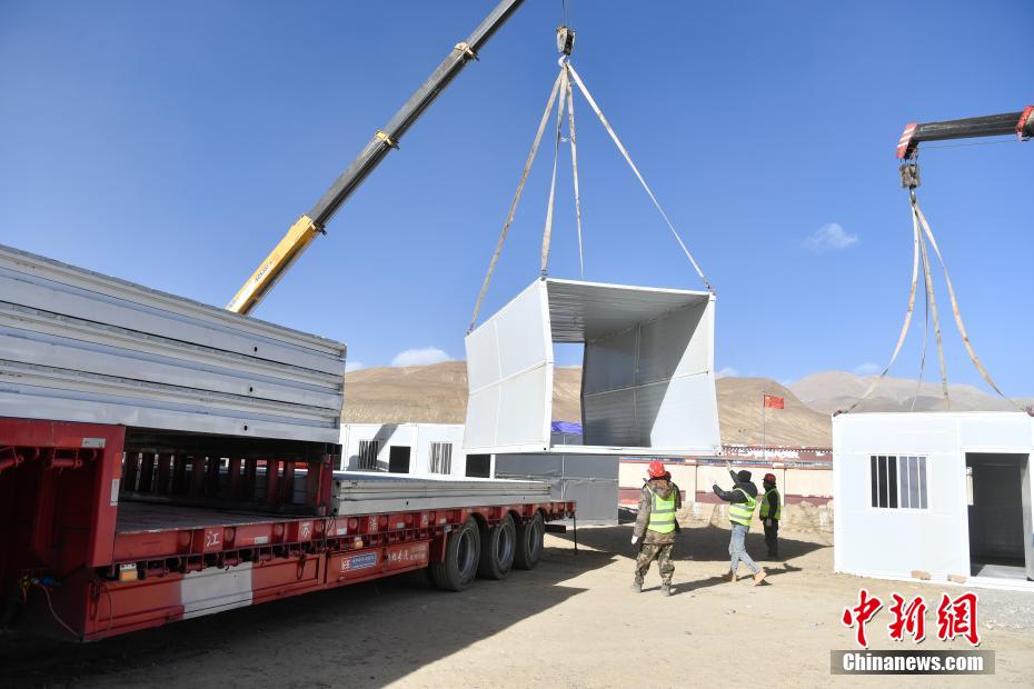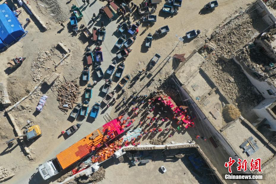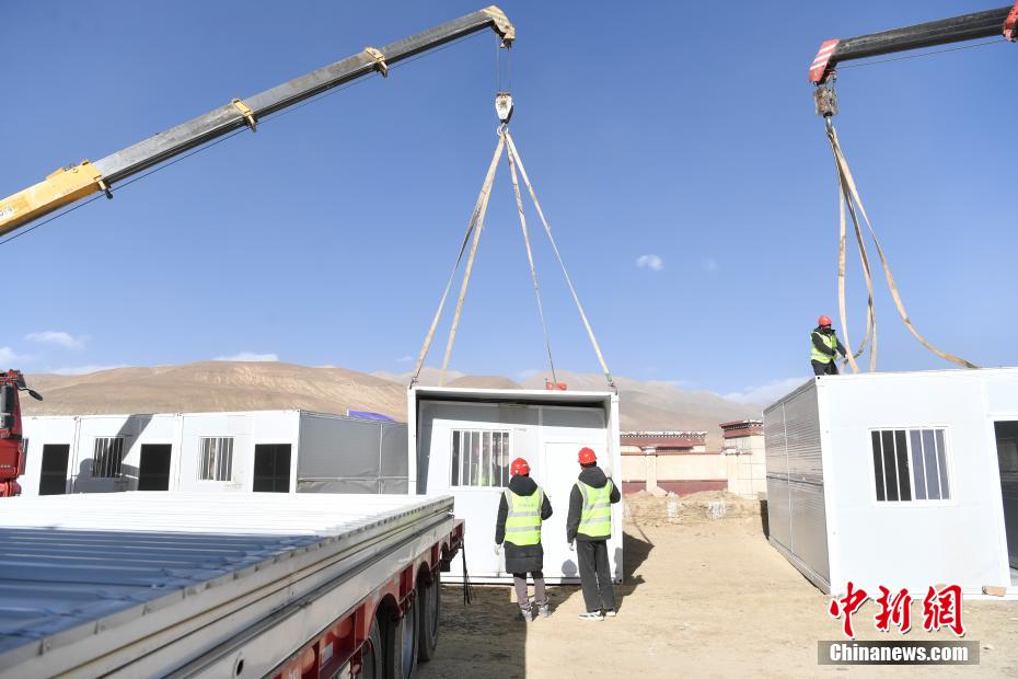1月9日,西藏自治區(qū)定日縣曲洛鄉(xiāng)措昂村安置點,愛心企業(yè)為受災(zāi)民眾搭建活動板房。當(dāng)日,位于西藏自治區(qū)定日縣曲洛鄉(xiāng)措昂村安置點,西藏各級救援人員和愛心企業(yè)不斷轉(zhuǎn)運(yùn)、發(fā)放生活物資、搭建活動板房、全力保障受災(zāi)民眾的飲食供應(yīng)等,保障受災(zāi)民眾基本生活。中新社記者 貢嘎來松 攝
