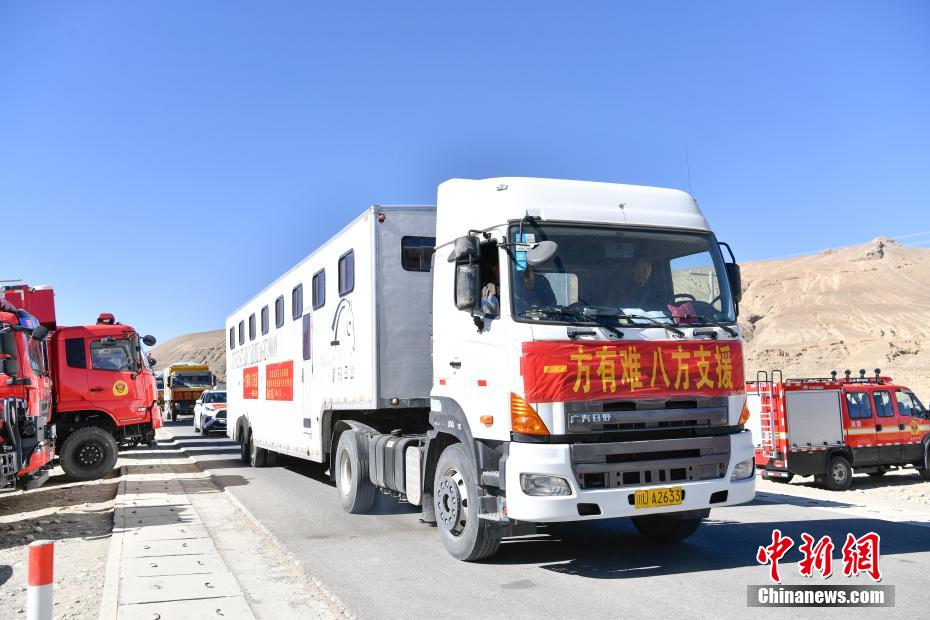1月9日,西藏自治區(qū)定日縣曲洛鄉(xiāng)措昂村,滿載救災(zāi)物資的貨車抵達(dá)安置點。當(dāng)日,位于西藏自治區(qū)定日縣曲洛鄉(xiāng)措昂村安置點,西藏各級救援人員和愛心企業(yè)不斷轉(zhuǎn)運(yùn)、發(fā)放生活物資、搭建活動板房、全力保障受災(zāi)民眾的飲食供應(yīng)等,保障受災(zāi)民眾基本生活。中新社記者 貢嘎來松 攝